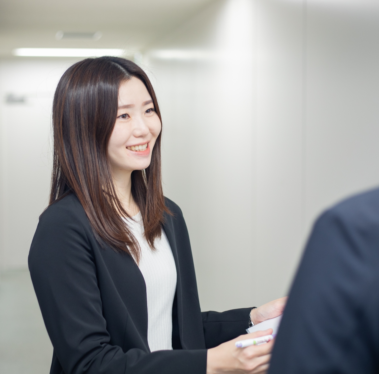 東京の同業他社で経験を積んだ後、結婚を機に故郷・北海道へUターン転職。転勤のない「地域限定職」として入社。現在は営業活動から支店運営に関わる事務業務まで、幅広く担当している。